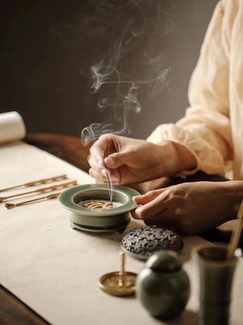 — contemplation de l’encens : observation de la combustion, méditation silencieuse, recentrage de l’esprit, entrée dans l’état d’unité entre le Ciel et l’Homme